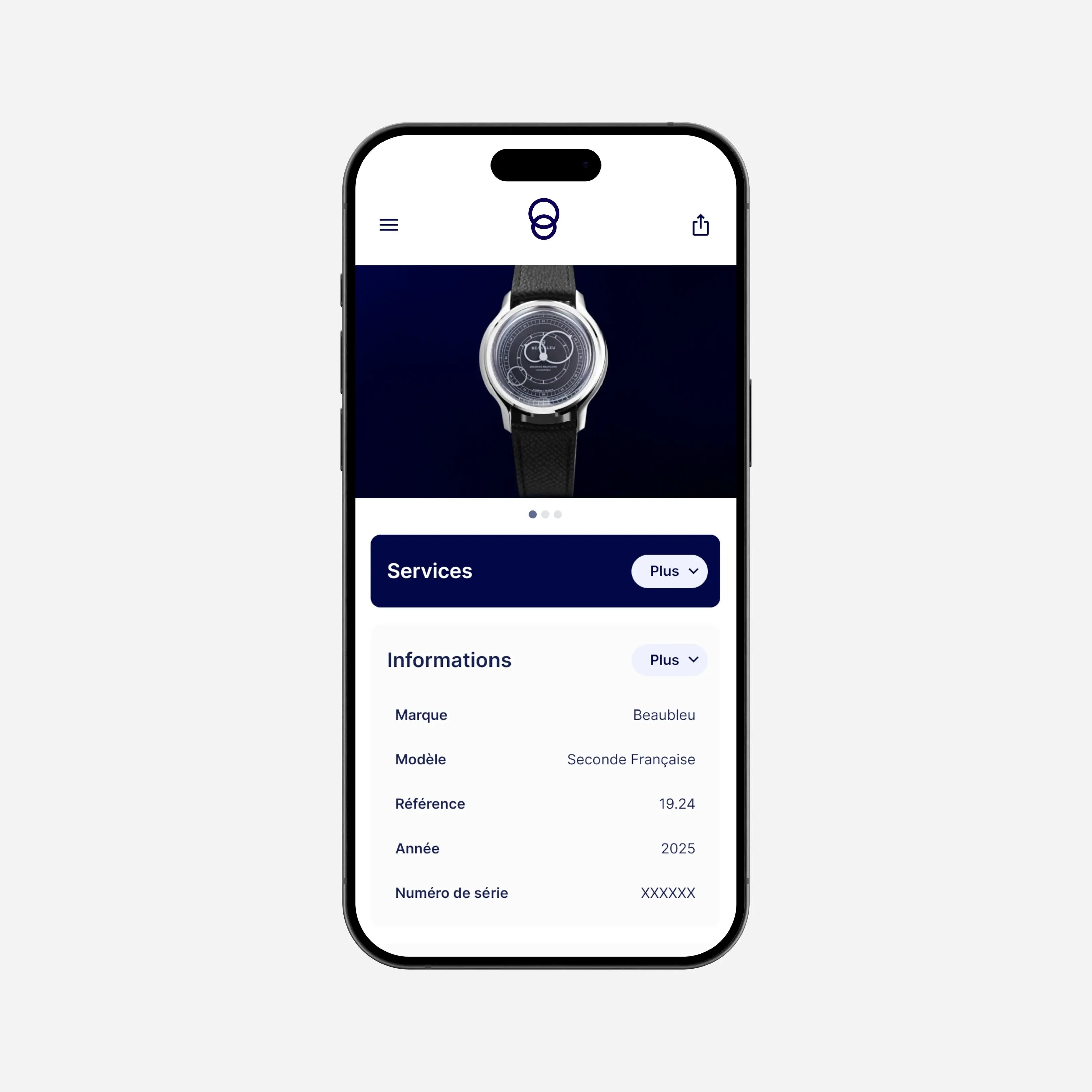 - Access to a digital interface dedicated to your watch to find its complete tracking using NFT technology