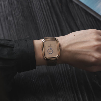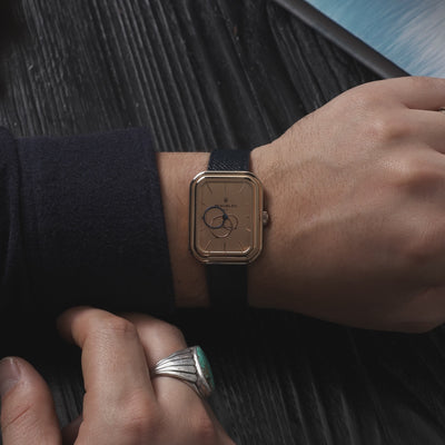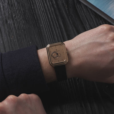 With its rose gold steel case and semi-octagonal silhouette, Ecce Figura Sienna alternates sweeping curves and playful materials. At its center, the brushed dial in the same shade seems sculpted from metal, capturing the light without ever imposing it. The polished hour-markers are applied with precision around the perimeter, for fluid reading and a singular allure.