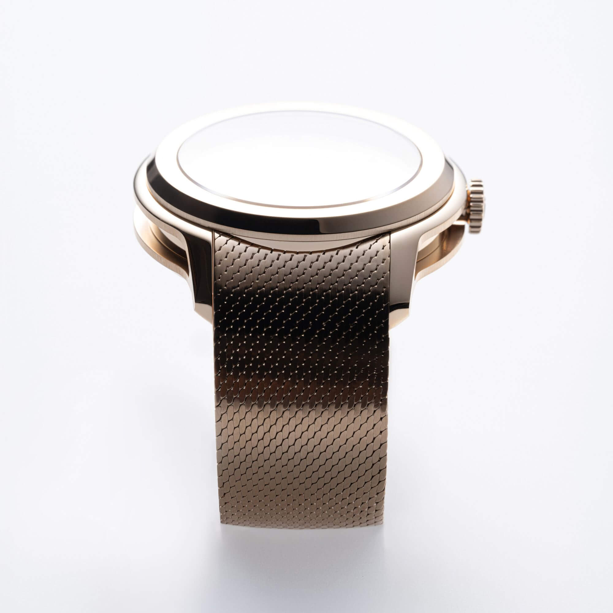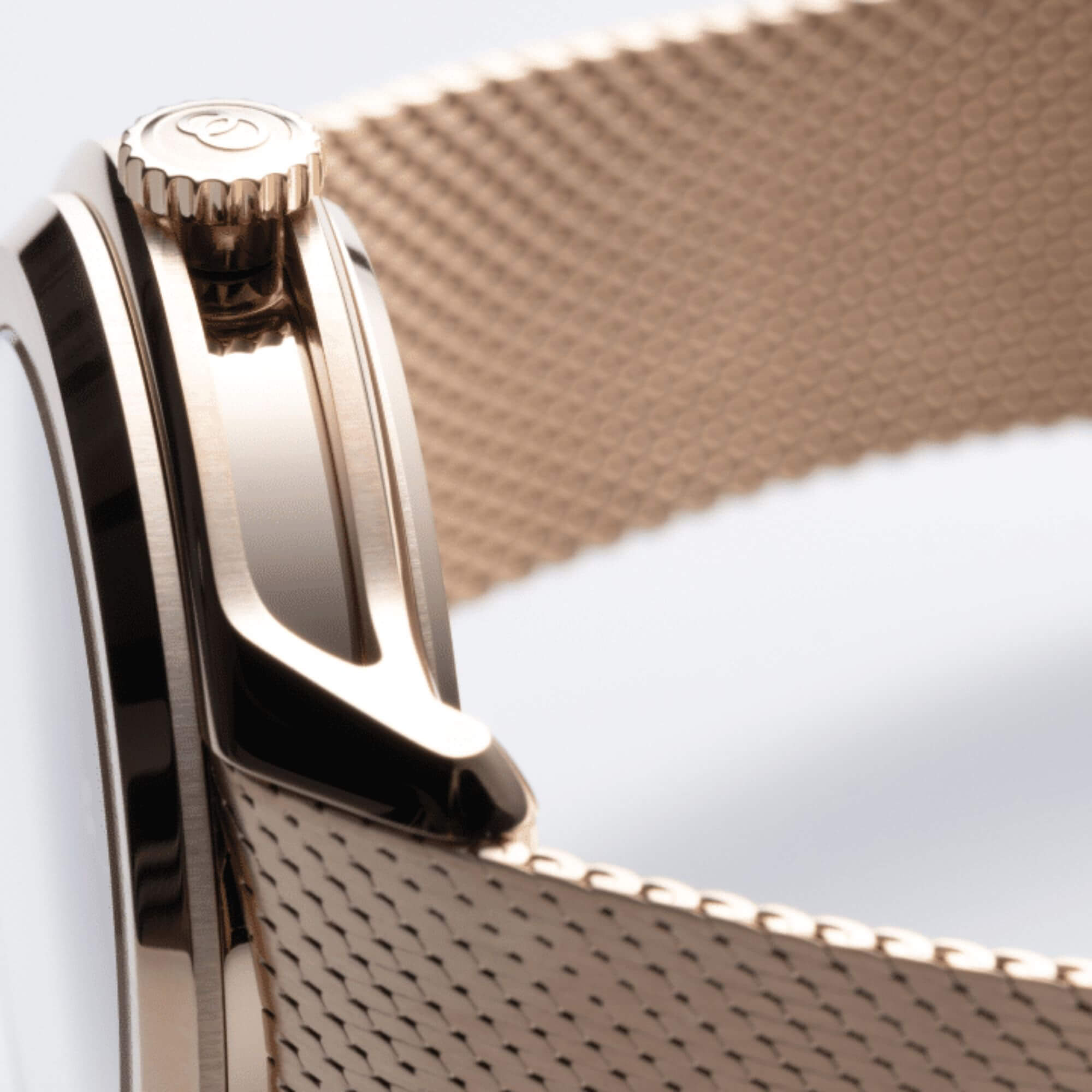 Entièrement imaginé dans notre studio parisien, le bracelet en or rose a la forme d'une lame d'acier articulée qui épouse la forme de nos modèles et de votre poignet.