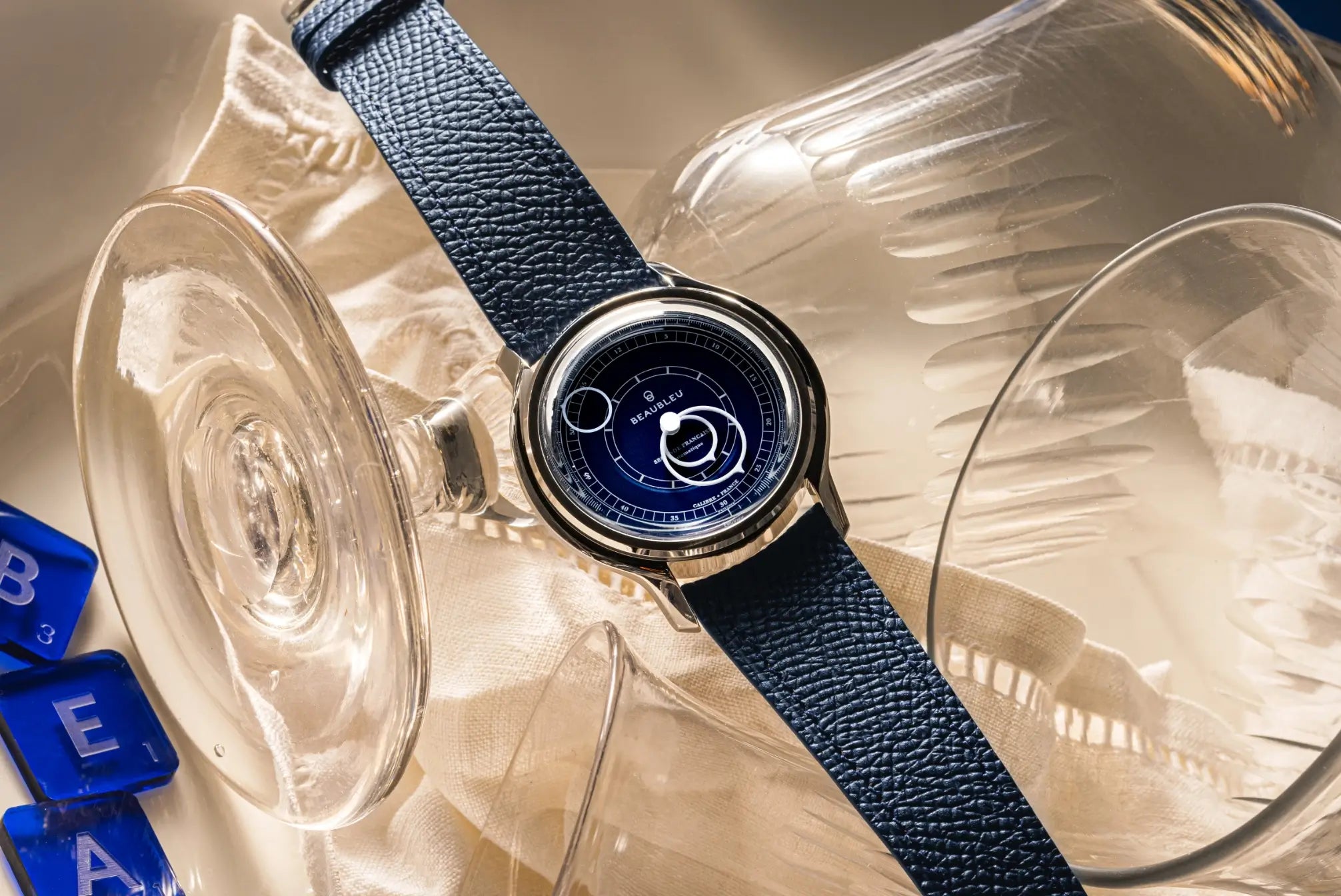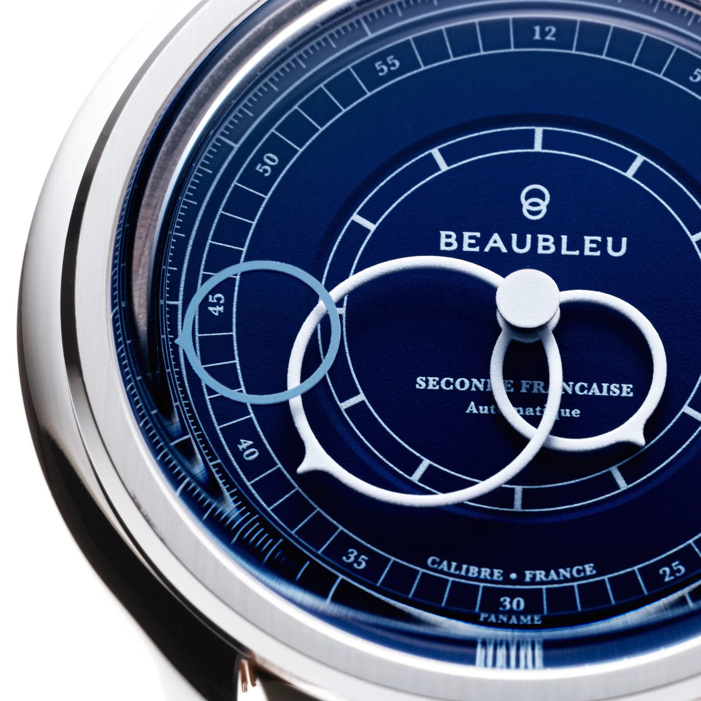 Parce que l’on aime comprendre ce qu’il se passe autour de nos poignets, le fond de boîte ouvert propre à l’ensemble des modèles Beaubleu met en avant la parfaite symétrique du mouvement France Ebauches FE, fabriqué en France. La masse oscillante reprenant la signature de la Maison survole un balancier soutenu par deux ponts visible à 360 degrés.