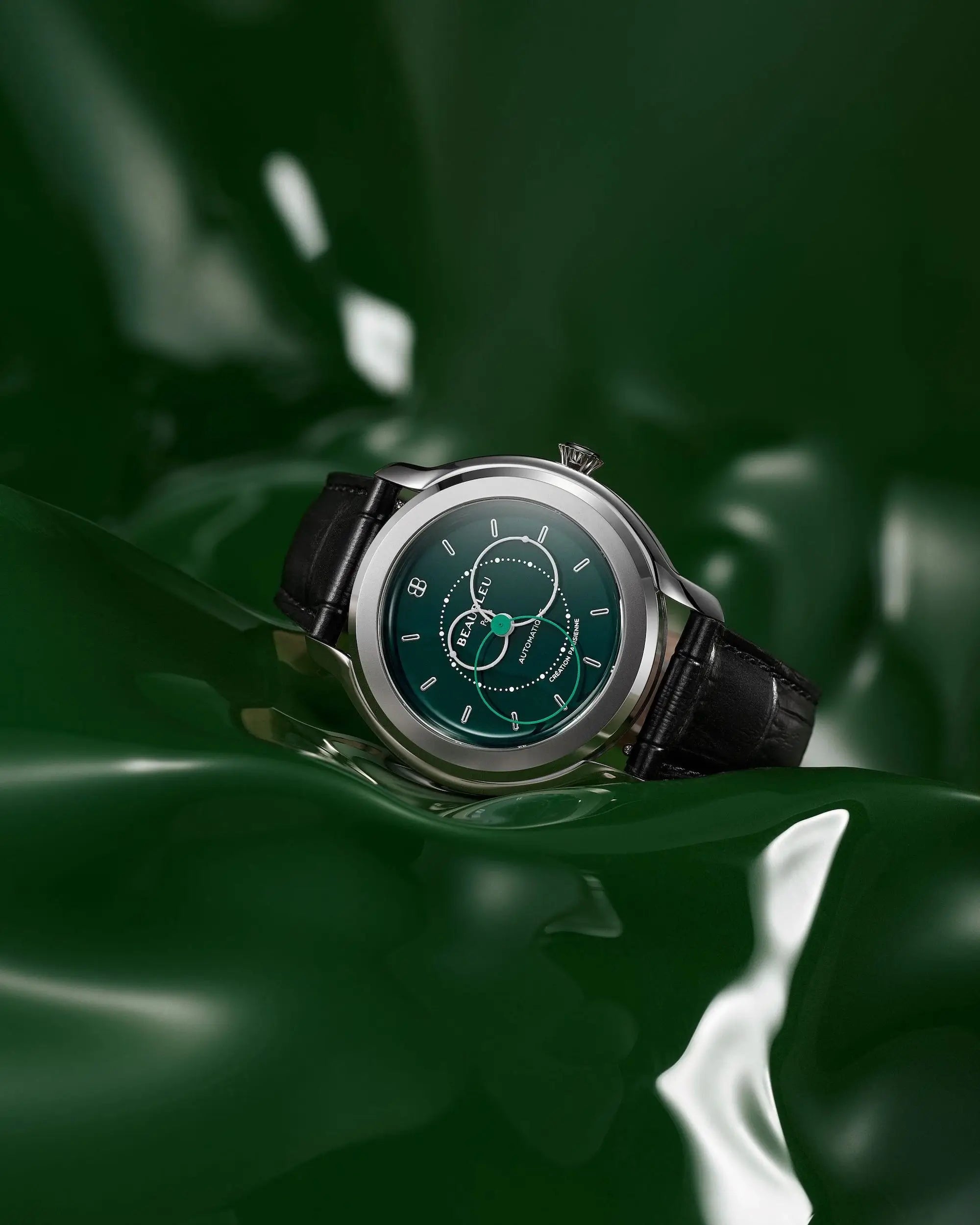 La montre Brio Vert Emeraude est animée par le mouvement automatique Miyota 9015, choisi pour sa fiabilité, sa finesse et sa robustesse. Avec une réserve de marche de 42 heures, elle se recharge avec les mouvements du poignet.